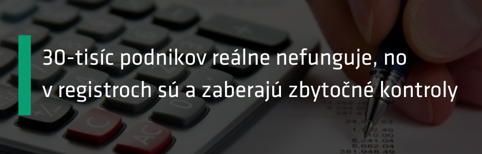 Veľkým problémom sú tiež databázy plné ,,mŕtvych“ firiem. Ide o zhruba 30-tisíc podnikov, čo je asi šestina zo všetkých firiem.