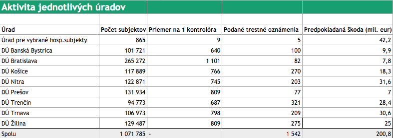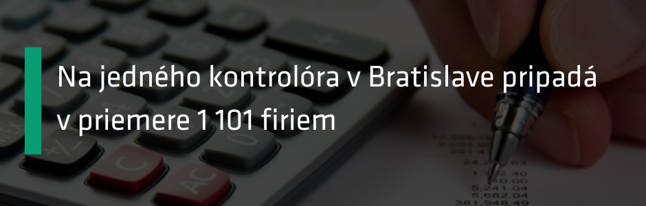 Je pochopiteľné, že v hlavnom meste a jeho okolí sídli najväčší počet slovenských firiem. Je to cez 260-tisíc spoločností. Avšak prepočet firiem na kontrolórov odhaľuje, že zároveň sú tí z bratislavského kraja personálne poddimenzovaní. Zatiaľ čo kontrolór v Bratislave má na starosti v priemere 1 101 firiem, jeho kolega z Banskej Bystrice či Trenčína ich má v priemere 650, teda skoro o polovicu menej.