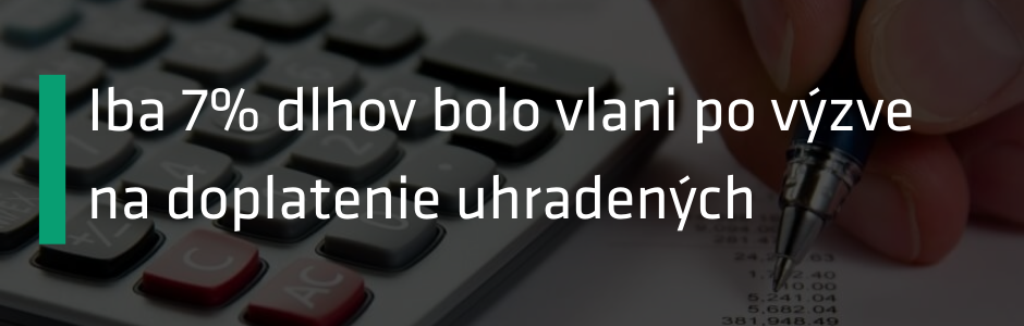 Podľa poriadku najskôr posielajú dlžníkom výzvy. Vlani išlo o vyše 100-tisíc výziev. No spätná väzba nie je celkom lichotivá. Po výzvach doplatili daňovníci vlani sedem percent, teda približne 50 miliónov z celkovo 700 miliónového balíka. Rok predtým to bolo deväť percent, teda 44 miliónov z 600-miliónového balíka.