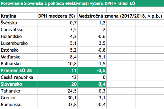Pre porovnanie, v roku 2018 Slovensku unikala pätina DPH. Priemer únie bol 11 percent, no Holandsku uniklo len niečo vyše štyroch percent.