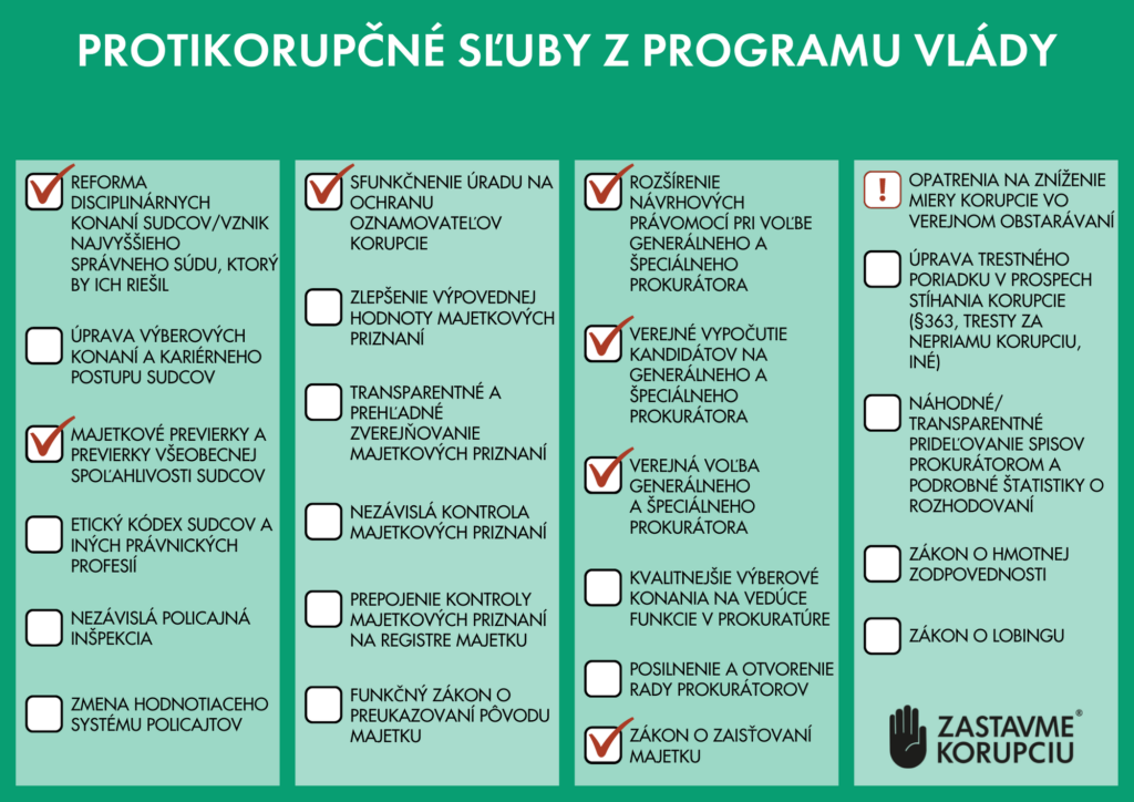 Slovensko sa od volieb v boji proti korupcii významne posunulo. Pozitívne hodnotíme najmä zmeny, ktoré počas uplynulého roka nastali v justícii, vo vyšetrovaní a vymáhaní spravodlivosti. A to napriek faktu, že ani vláda Igora Matoviča sa nevyhla papalášizmu a má za sebou aj prvé kauzy.